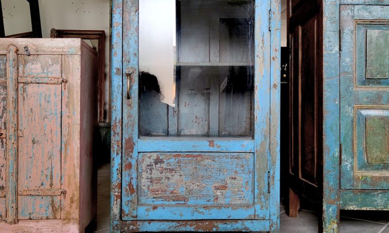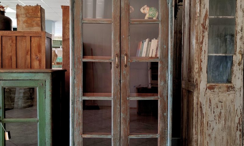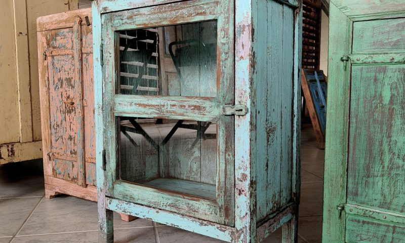 Bellissima vetrina, con residui blu/turchese, in legno di Teak...