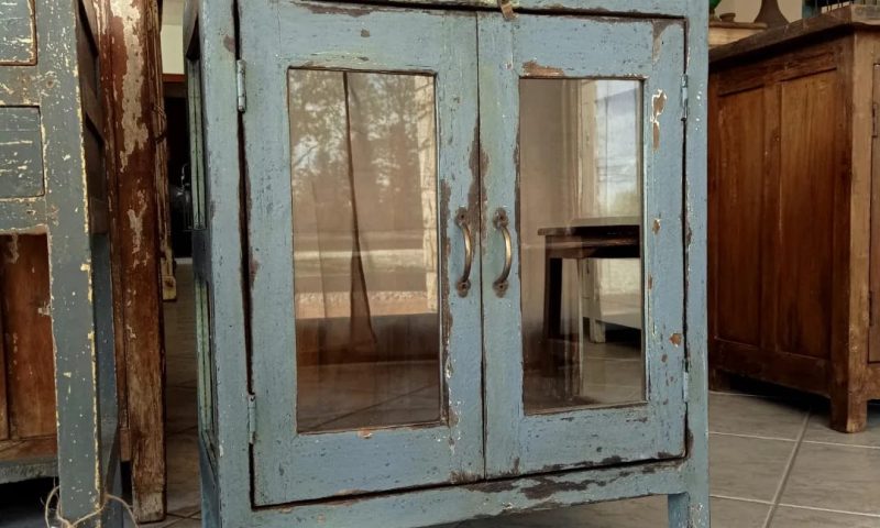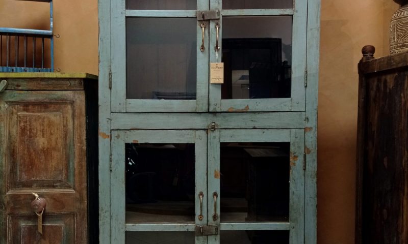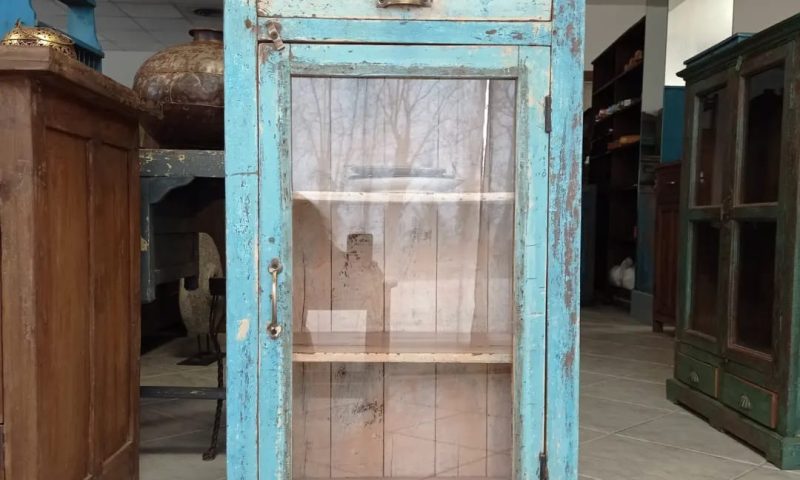 Piccola vetrinetta grigio/blu in legno di Teak.