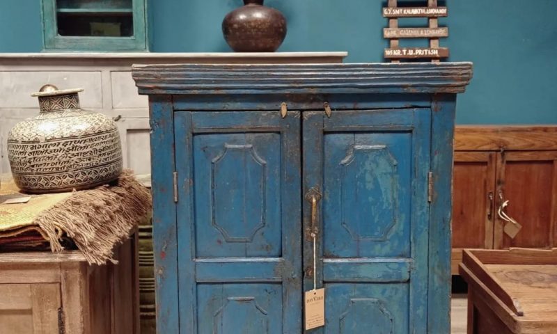 SCRITTOIO BLU IN LEGNO DI TEAK